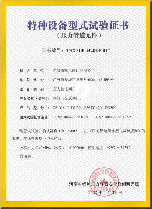 閘閥型式試驗證書