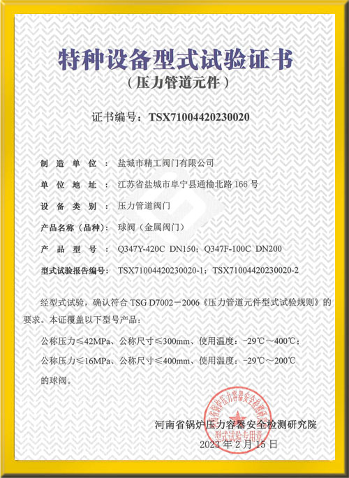 球閥型式試驗證書