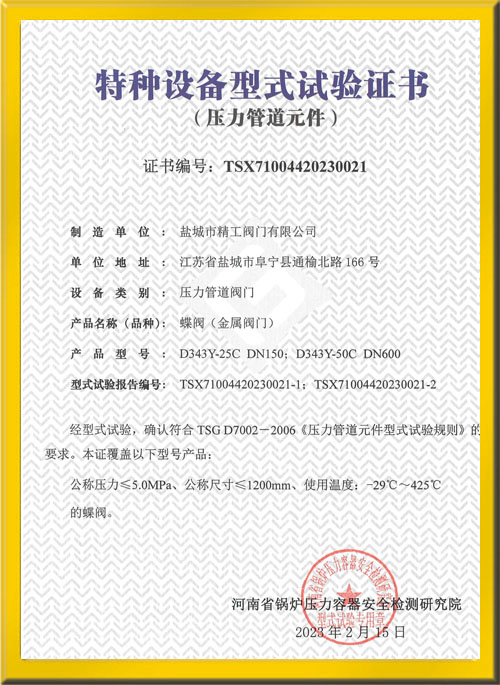 蝶閥型式試驗證書