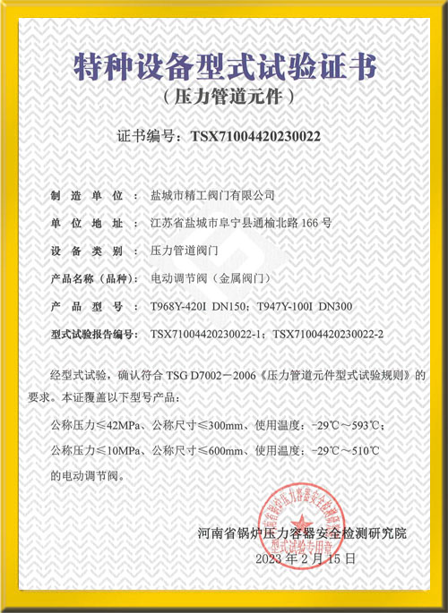 電動調節閥型式試驗證書