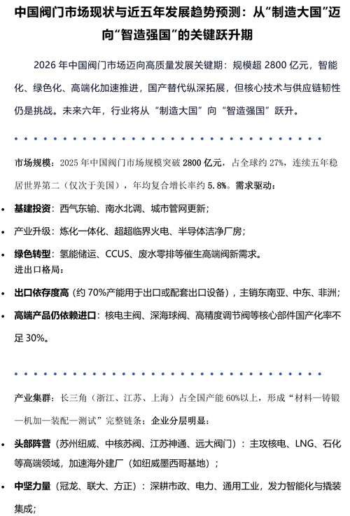 中國閥門市場趨勢
